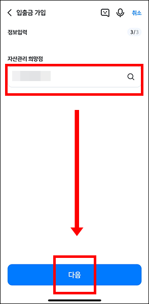 마지막으로 자산관리 희망점을 선택합니다. 집이나 회사 등 접근성이 좋은 곳을 찾아서 설정하시면 될 것 같습니다.