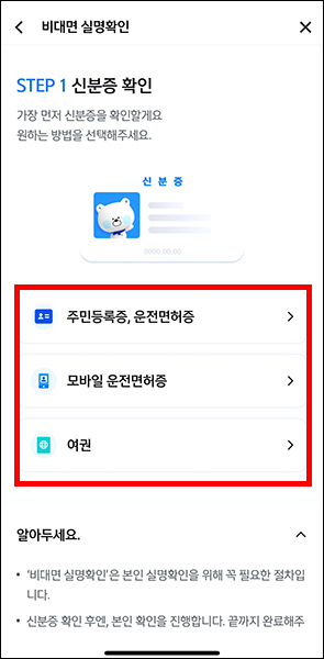 비대면 실명확인은 계좌를 개설하는 과정에서 신분증을 촬영하여 개인정보를 확인하고 본인확인을 거치는 것입니다.